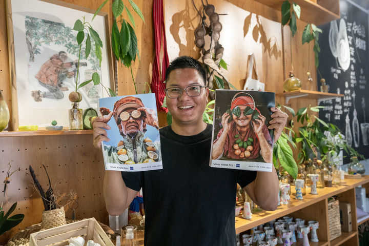 孟连县“新农人”、“牛友果星球”工作室主人李伟展示自己拍摄的创意照片(10月28日摄)。新华社记者 陈欣波 摄