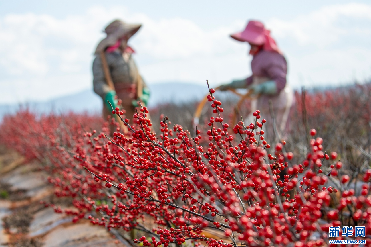 新年伊始,位于云南省曲靖市马龙区月望乡双龙村的花卉种植基地,2000余亩北美冬青红遍山野,吸引了众多游客前来拍照打卡。北美冬青树形美观,耐寒性强,鲜红的浆果能一直保持到春季,主要用于切枝观果、园林景观美化等。目前,该基地的北美冬青已进入冬季管护期,务工人员正忙着移栽、补种、浇水。近年来,当地依托气候和土壤资源优势,引进龙头企业大力发展北美冬青等特色花卉种植,带动农户增收的同时拓展了农旅融合发展的新路子。(杨俊鹏)