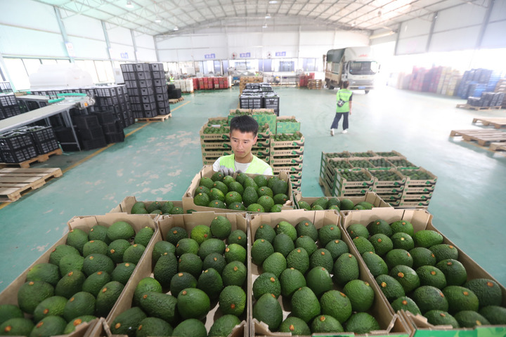 芒信村的牛油果加工厂里,分选过后的牛油果即将发往全国。滕俊摄
