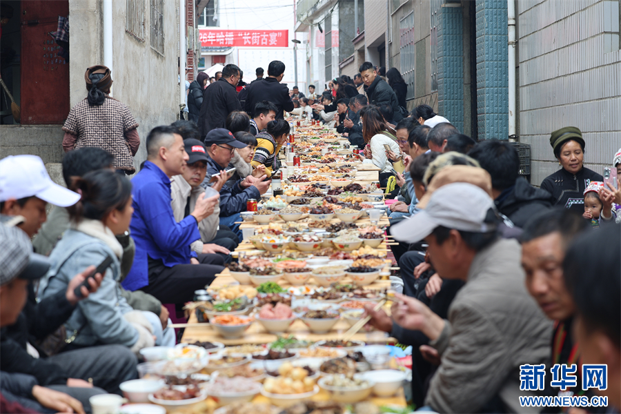极具氛围感的,当属哈尼族的长街宴。作为哈尼族传统的宴席,长街宴已成为游客来云南过春节的重要体验项目之一。宴席上,几十种哈尼风味菜肴依次铺开,来自五湖四海的游客可以从“龙头”席吃到“龙尾”席。