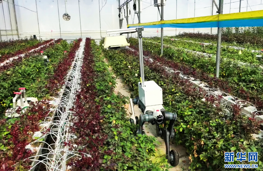 云南省农科院与企业联合研发的机器狗正在巡检月季植株状况(资料图)。新华网发(云南省农科院花卉所 供图)