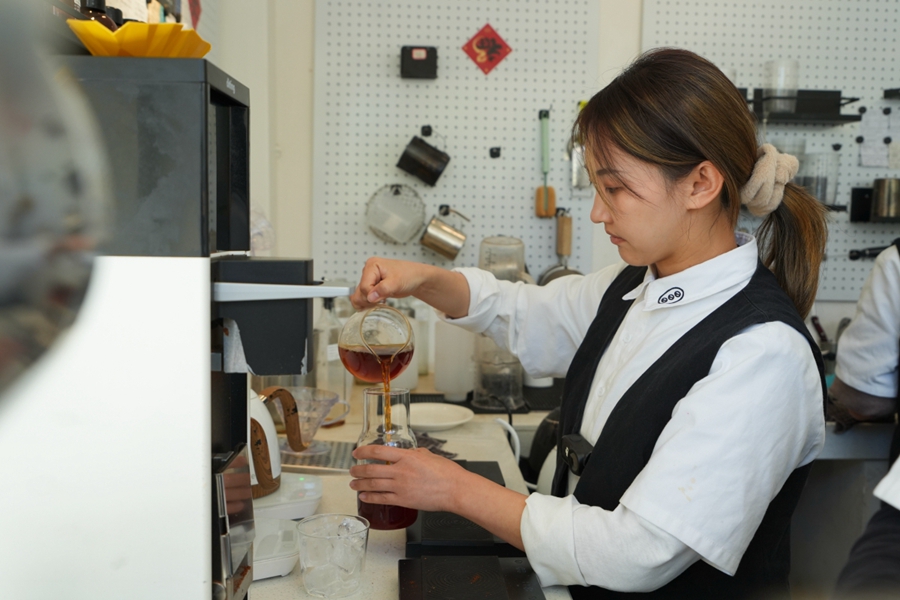 李颖娟在制作咖啡(摄于1月19日)。新华网 赵普凡 摄