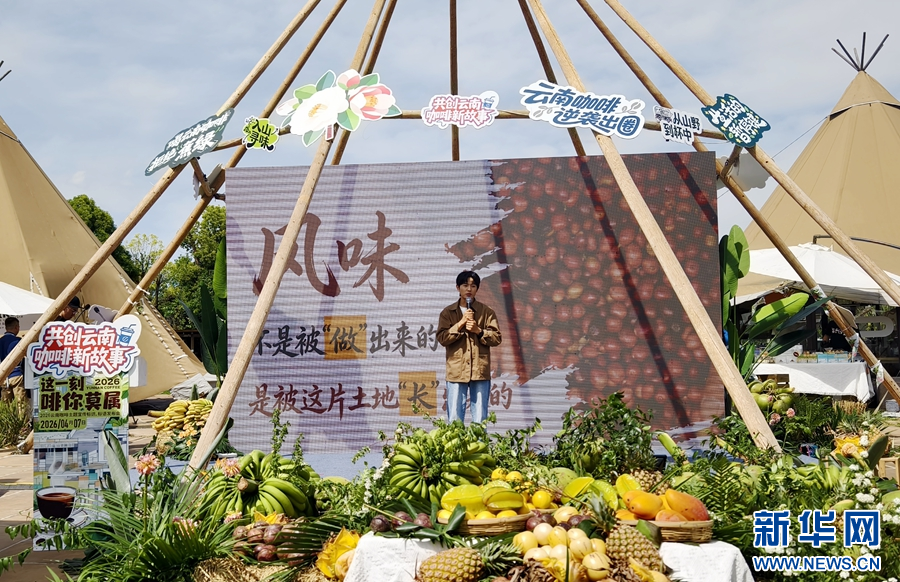 4月7日发布会现场,保山文旅推荐官知洋分享自己与咖啡的故事。新华网发(赵嘉 摄)
