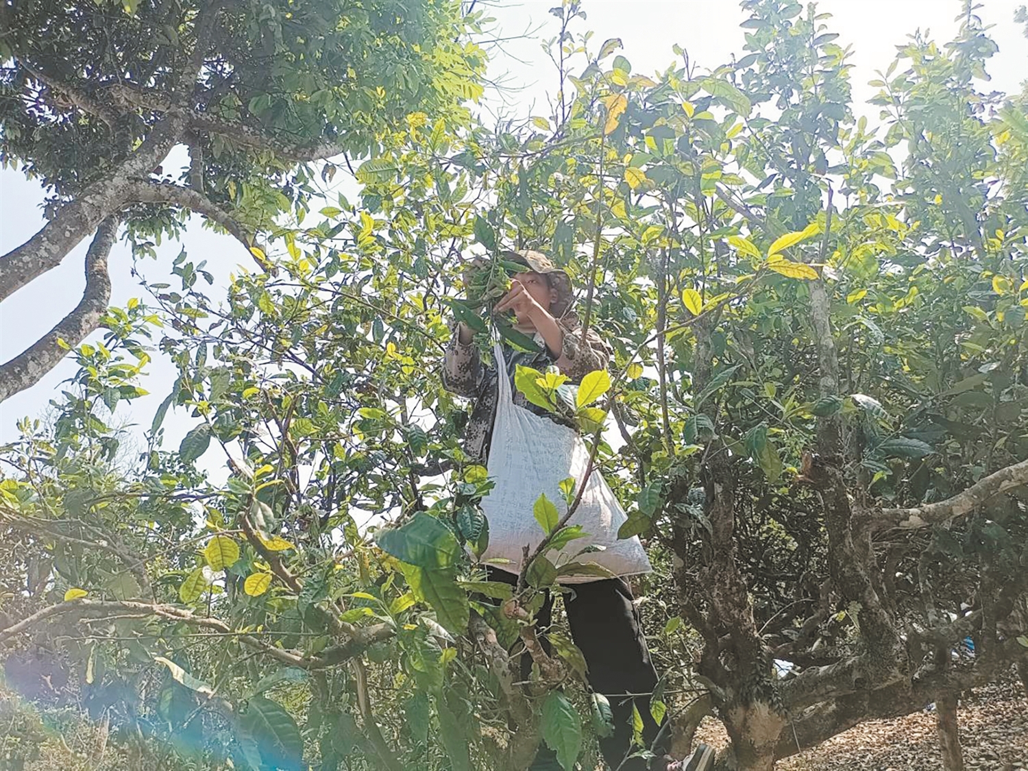 勐海县贺开村茶农采摘茶叶。