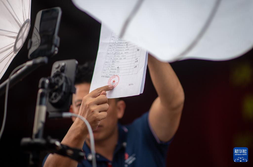 4月22日,云南省临沧市双江县主播在直播间展示品荐溯源报告。新华社记者 江文耀 摄