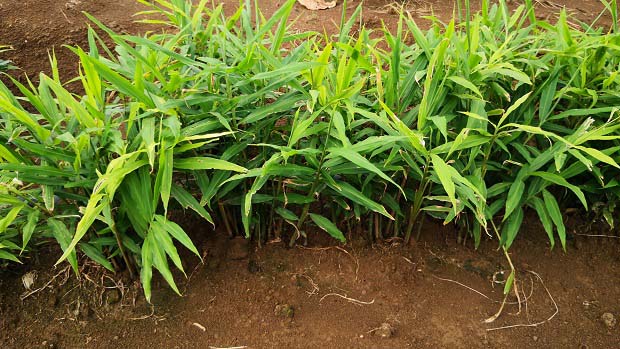 生姜采用地膜覆盖栽培可提前20-30天播种,可使生姜增产20%。地膜覆盖的具体方法是:生姜播种覆土后,喷施除草剂,用地膜绷紧盖于沟两侧的垄上,取土压紧地膜,使沟底与上端膜的距离保持15厘米左右,1幅地膜可盖2-4行。种姜出苗后,待幼苗上端与地膜接触时撤出地膜。其他栽培管理措施均按常规进行。