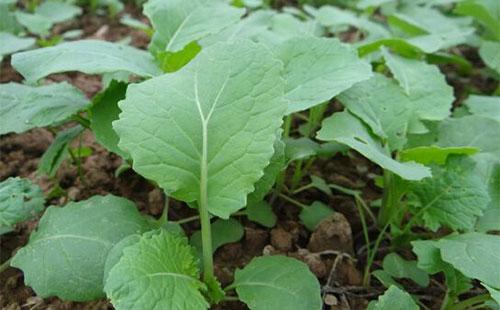 油菜苗期植株密度过大、单株营养不良时可导致幼苗叶片发红,即缺氮时植株矮小、新叶出生慢、叶片小、呈黄绿色,或叶缘发红、中部为黄色,形成黄红叶;缺磷时能使植株生长缓慢叶片小而厚、叶片数减少,叶片边缘和叶柄呈紫红色;缺硼时叶片呈蓝紫红色、叶缘倒卷,根茎膨胀,叶面出现蓝紫斑。