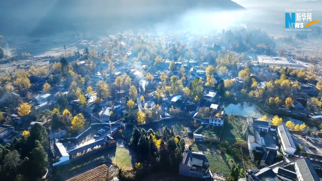 在云南腾冲银杏村邀晨光共绘“冬日童话”