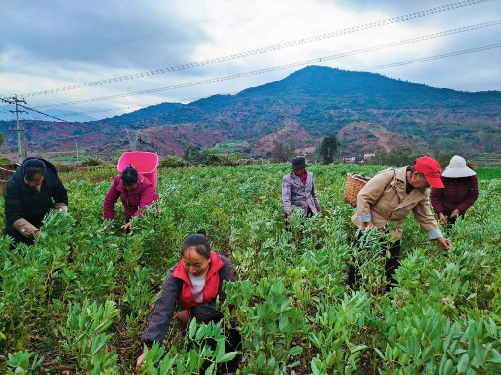 12月25日,禄丰市恐龙山镇的群众在采摘青早蚕豆。(董其焕 摄)