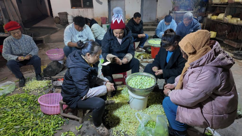 12月25日,禄丰市恐龙山镇的群众在剥制青豆米。(董其焕 摄)