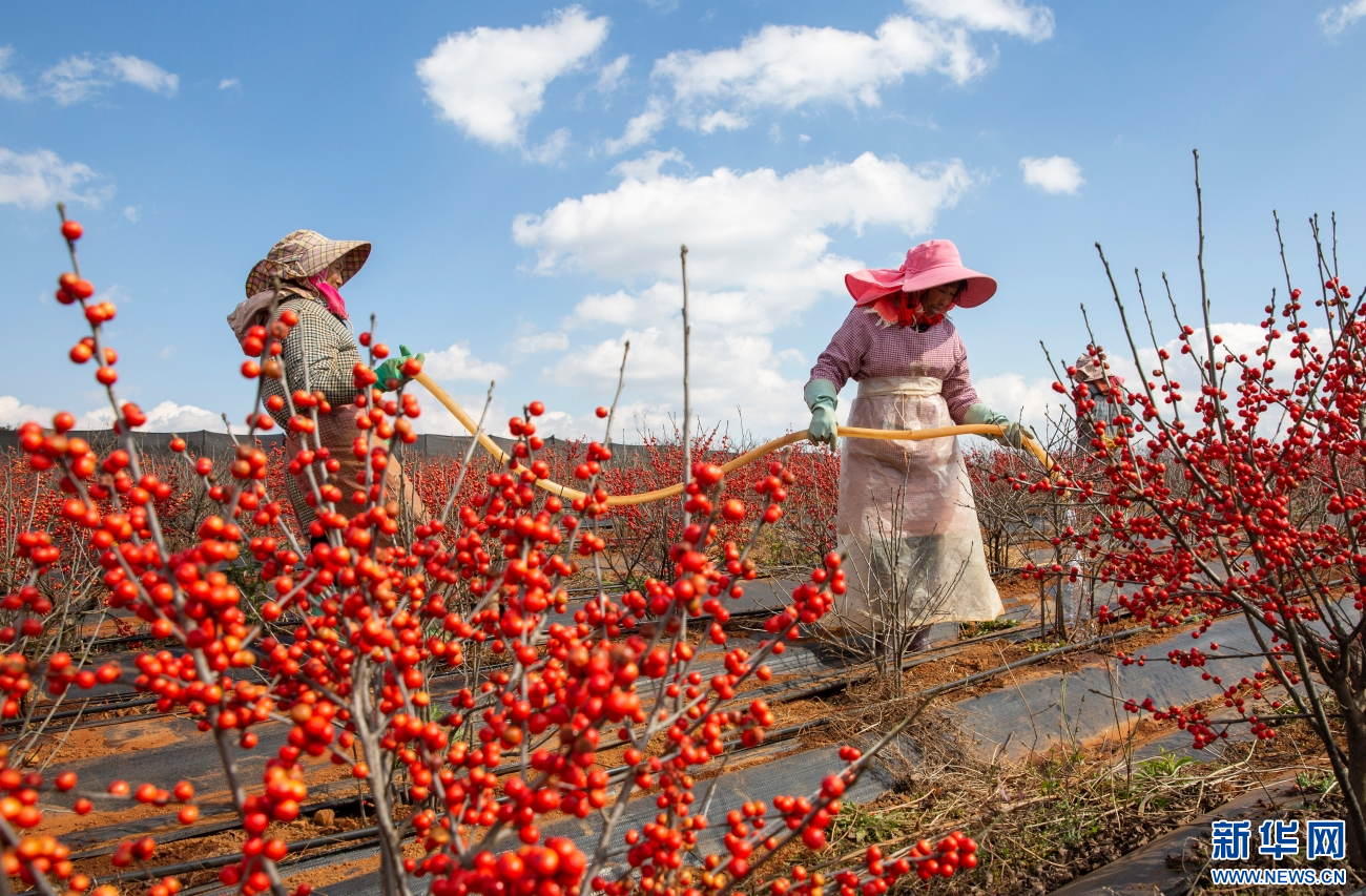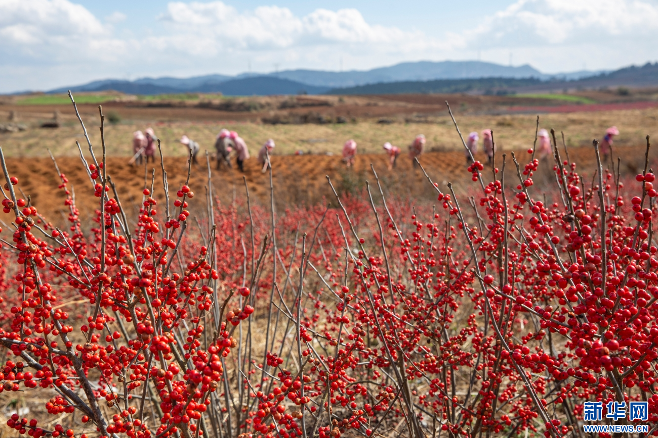 新年伊始,位于云南省曲靖市马龙区月望乡双龙村的花卉种植基地,2000余亩北美冬青红遍山野,吸引了众多游客前来拍照打卡。北美冬青树形美观,耐寒性强,鲜红的浆果能一直保持到春季,主要用于切枝观果、园林景观美化等。目前,该基地的北美冬青已进入冬季管护期,务工人员正忙着移栽、补种、浇水。近年来,当地依托气候和土壤资源优势,引进龙头企业大力发展北美冬青等特色花卉种植,带动农户增收的同时拓展了农旅融合发展的新路子。(杨俊鹏)