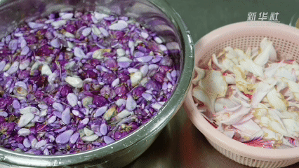 走进西盟县勐梭镇的农家小院,一阵阵花香与食物香中,人们正忙着制作一桌丰盛的“鲜花宴”。炒紫藤花、白花稀饭、腊肉炒老瓦花、白花煮鸡、油炸白花、石斛花蒸蛋、干板菜白花豆米汤……一道道以鲜花为主要食材的菜肴色香味俱全,令人垂涎欲滴。