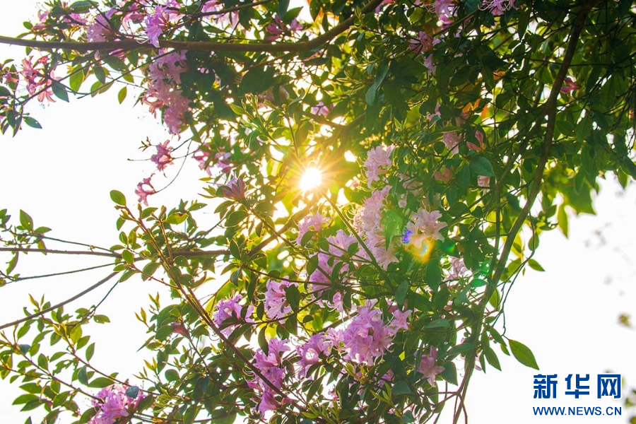 阳光下的腋花杜鹃(视频截图)。